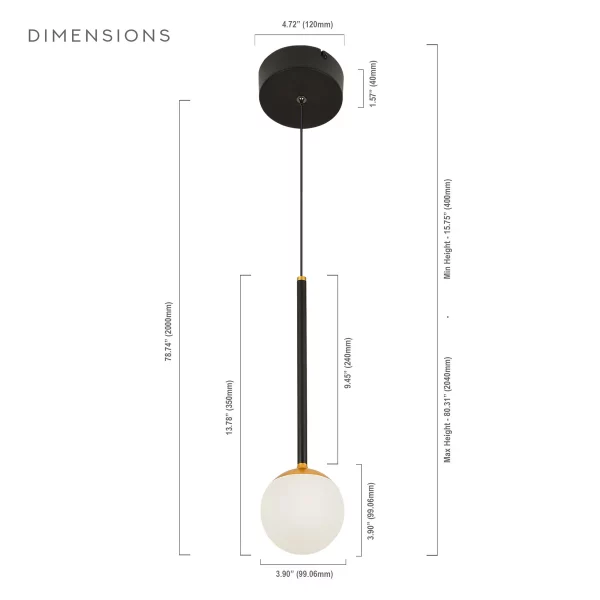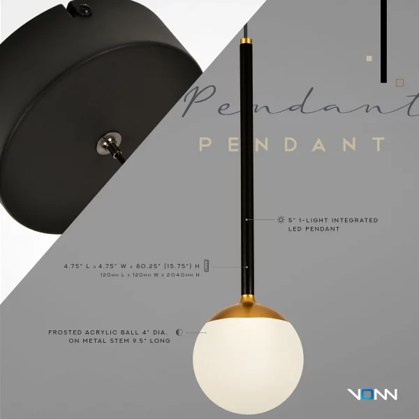 • DESIGN: Integrated LED Pendant in Black Finish with Frosted Acrylic Shade and Gold element for transitional elegant look