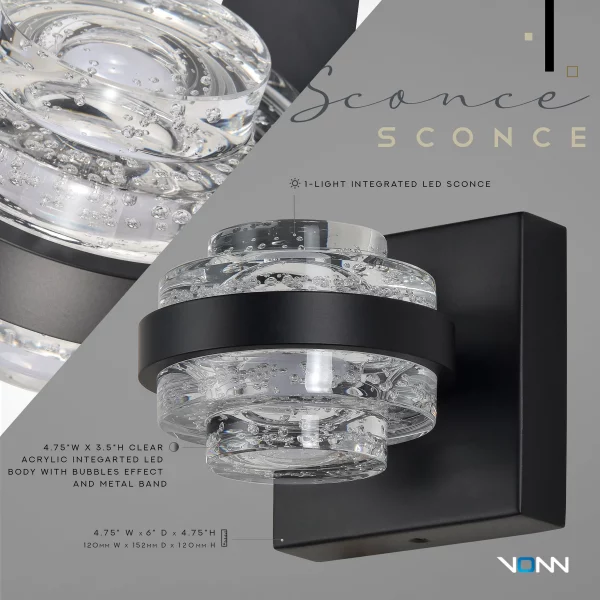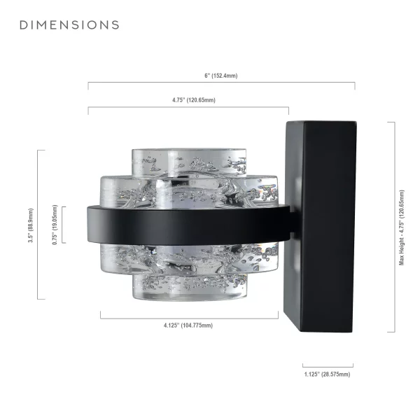 • DESIGN: 4.75 inches wide and 6 inches deep Black sconce with Integrated LED light for elegant look