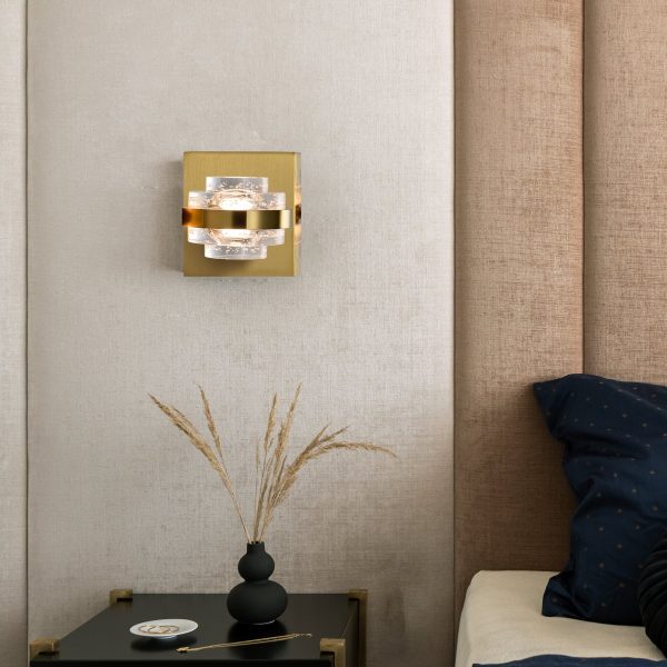 • DESIGN: 4.75 inches wide and 6 inches deep Antique Brass sconce with Integrated LED light for elegant look