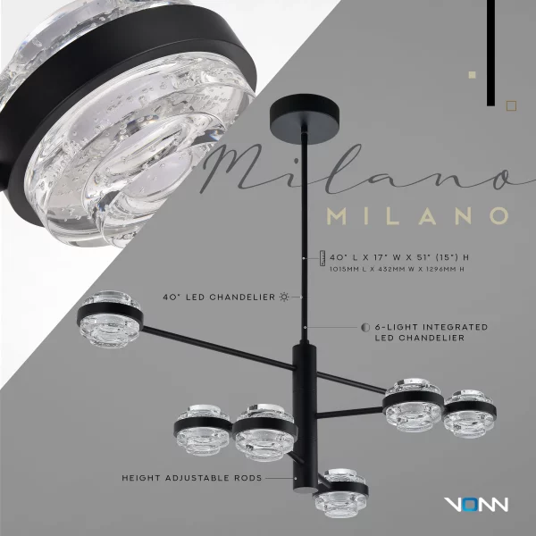 • DESIGN: 40 inches wide Black Chandelier with 6 Integrated LED lights for exceptionally unique look