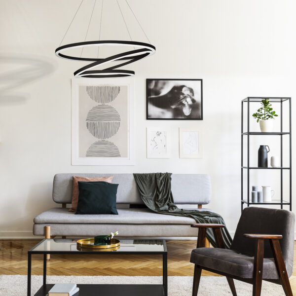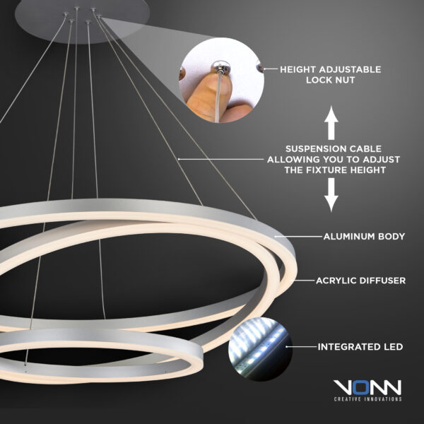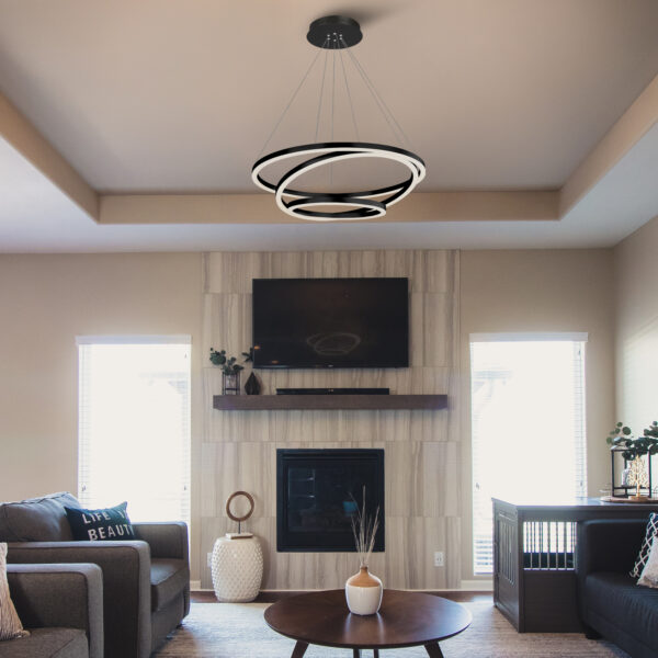 Tania Trio VMC32500BL 32″ LED Chandelier, Adjustable Hanging Light, in Black