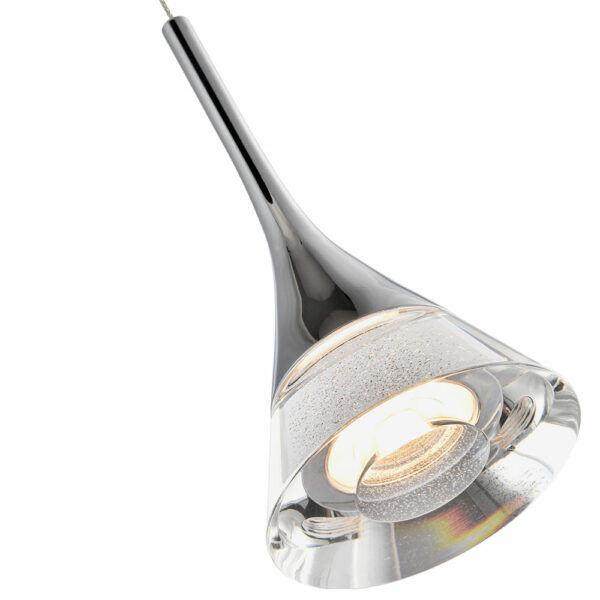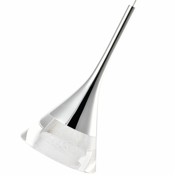 • DESIGN: Modern pendant with cone shaped acrylic shade. The shade is clear with glitter accent and polished chrome top. Canopy is black.