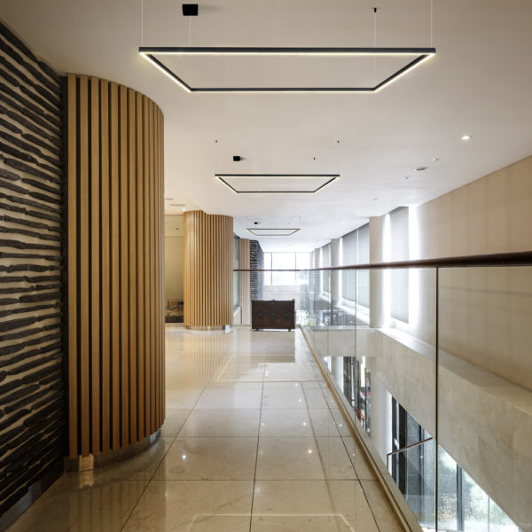 • PROFILE: LED Fixture w/ Height Adjustable Suspension Cables and canopy on the side