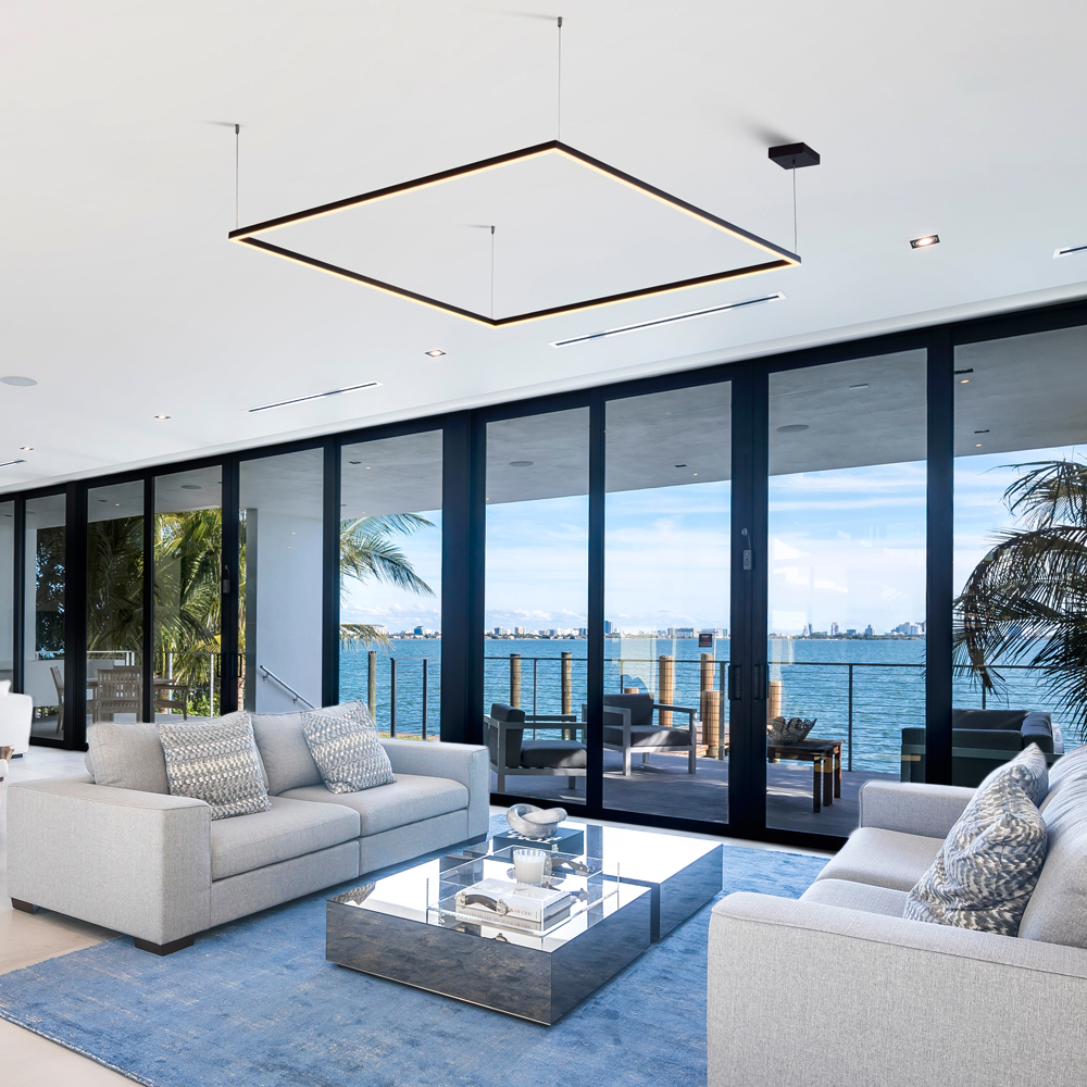 • PROFILE: LED Fixture w/ Height Adjustable Suspension Cables and canopy on the side