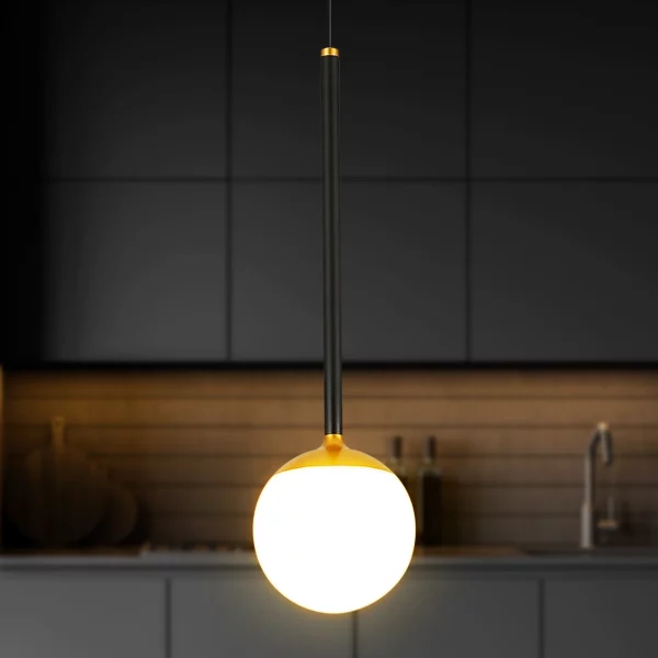 • DESIGN: Integrated LED Pendant in Black Finish with Frosted Acrylic Shade and Gold element for transitional elegant look