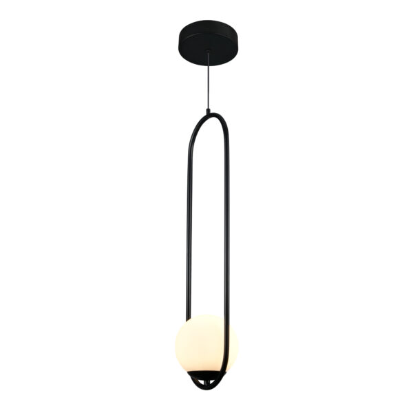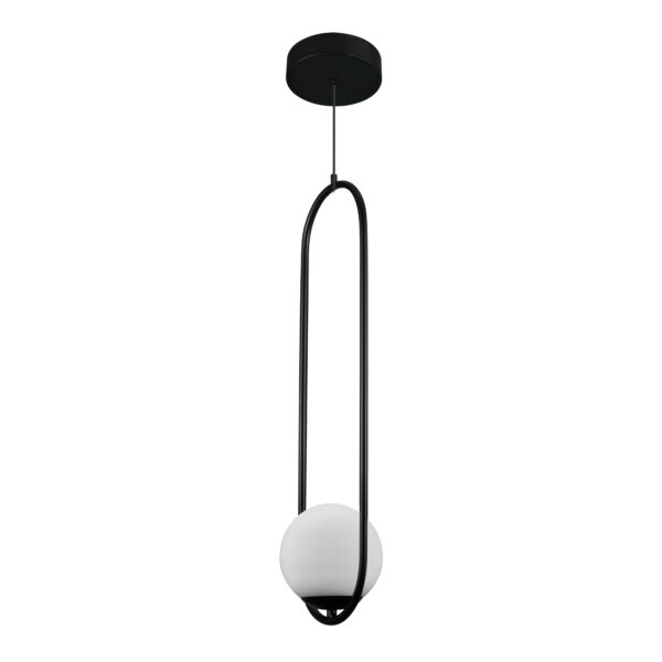 • DESIGN: Modern Black Pendant Light with 1 White Glass Shade