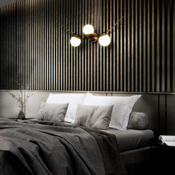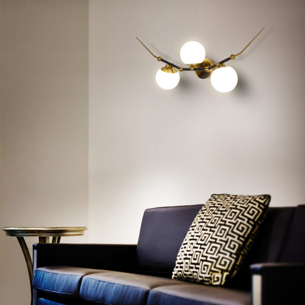 • DESIGN: Modern Sconce with 3 Ball Shaped White Frosted Glass Shades