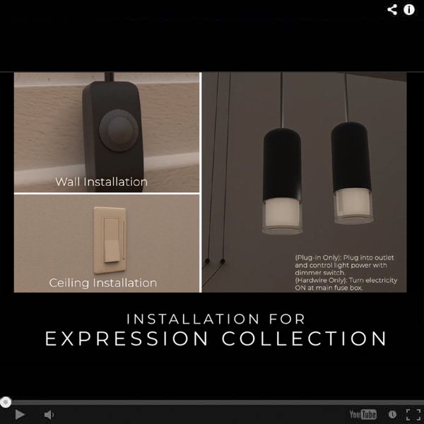 •Plug-in – Install fixture on wall or ceiling and plug-in at the outlet (Plug-in Dimmer Switch Included)
