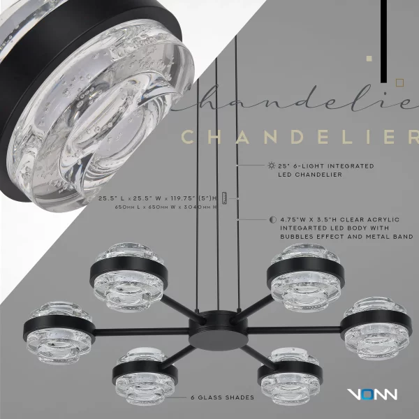 • DESIGN: 25.50 inches wide Black Pendant with 6 Integrated LED lights for exceptionally unique look