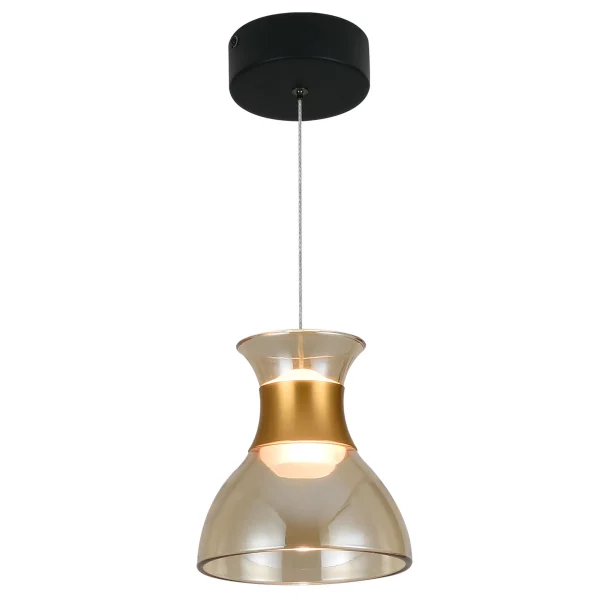 • DESIGN: Integrated LED Pendant with Black canopy, Cognac Glass Shade and Gold element for elegant look