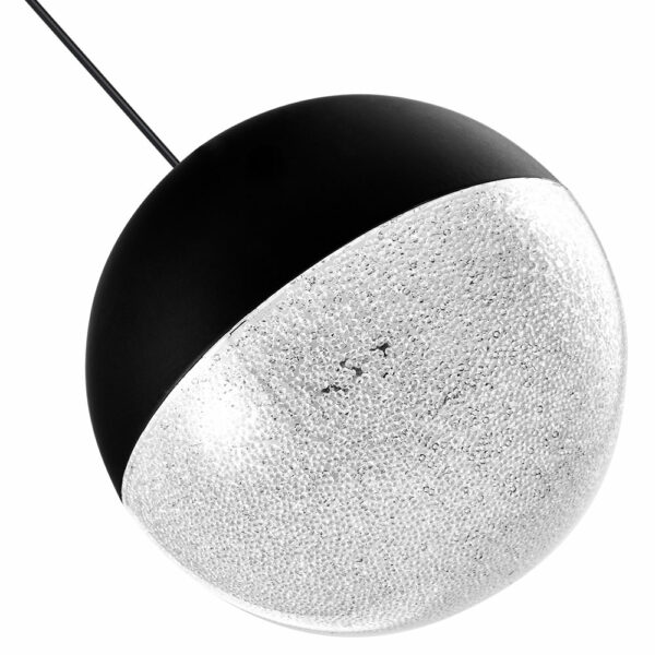 • DESIGN: Modern pendant with ball shaped acrylic shade. The shade has black top and white bottom with crystal sand inside. Canopy is black.