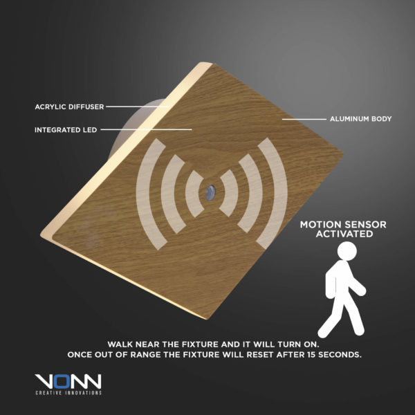 • TECHNOLOGY: Walk near the fixture and it will turn on. Once out of range the fixture will reset after 15 seconds.