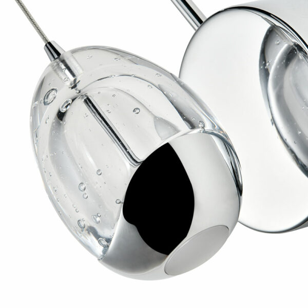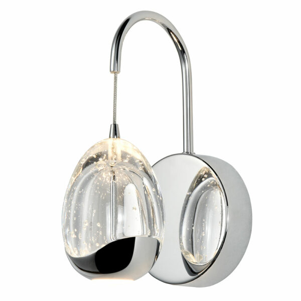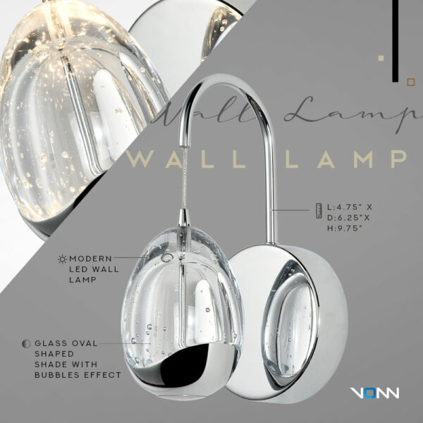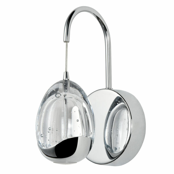 • DESIGN: Modern sconce with oval shaped glass shade. The glass shade is clear with bubbles accent and polished chrome bottom