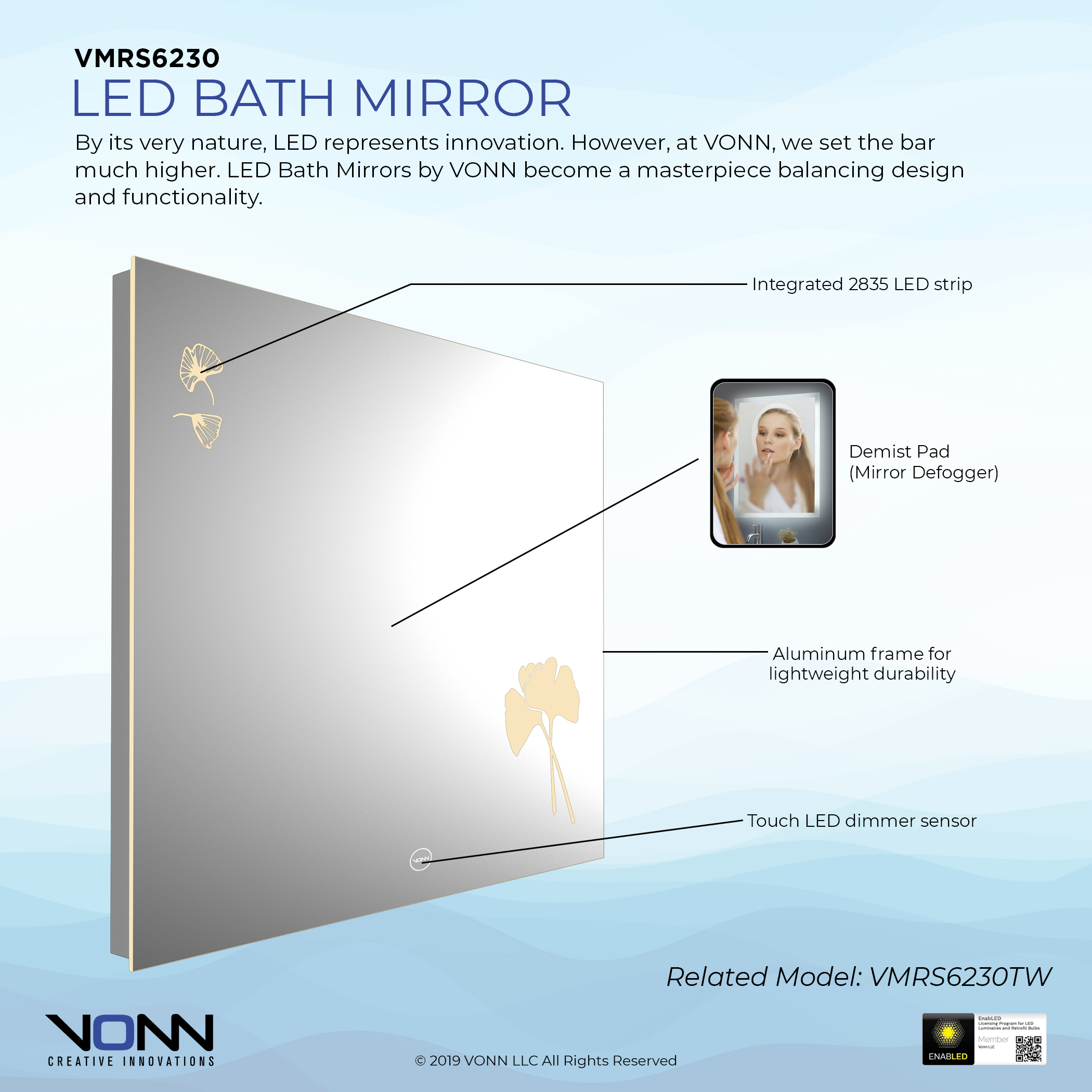 VONN VMRS6230 LED Bath Mirror in Silver with Back Lit, Rectangle 30″w x 24″H or 36″W x 30″H